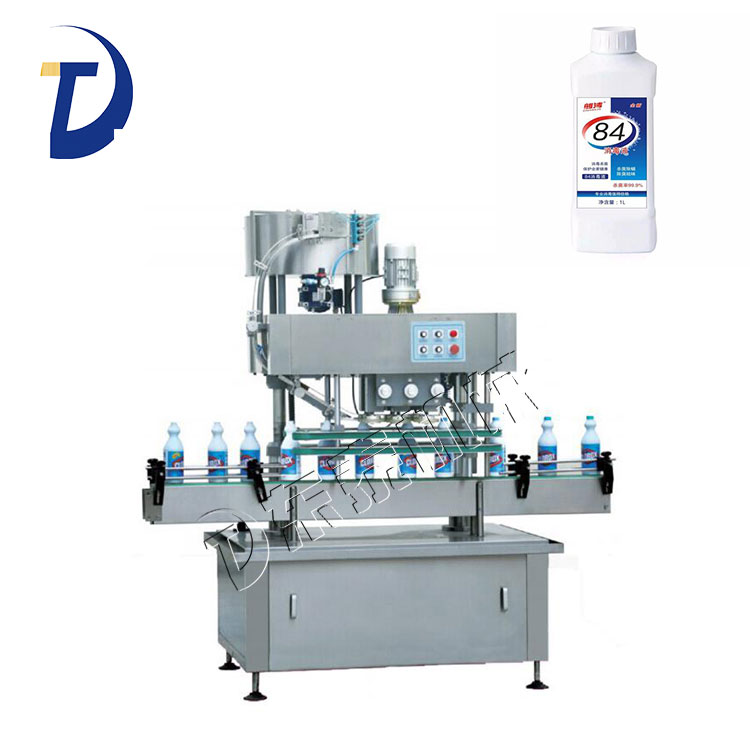 84消毒液灌裝機設(shè)備,是目前國內(nèi)液體灌裝的高端產(chǎn)品,自動化程度高,灌裝計量精確,適用于塑料瓶、玻璃瓶電子量杯感應(yīng)直列式灌裝機,是目前國內(nèi)液體灌裝的高端產(chǎn)品,自動化程度高,灌裝計量精確,適用于塑料瓶、玻璃瓶等各種幾何形狀的瓶型的不含氣體的溶液、酒精、消毒水及其他溶液的定量灌裝。